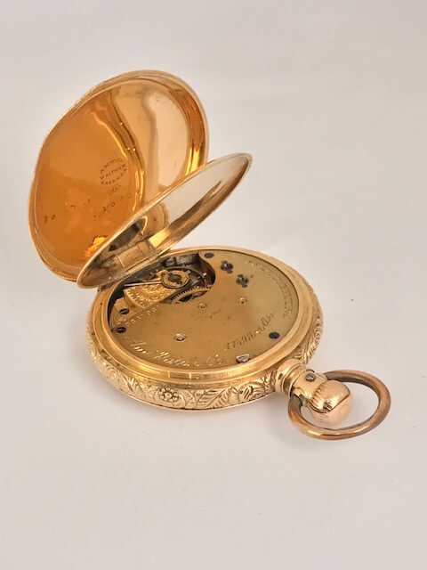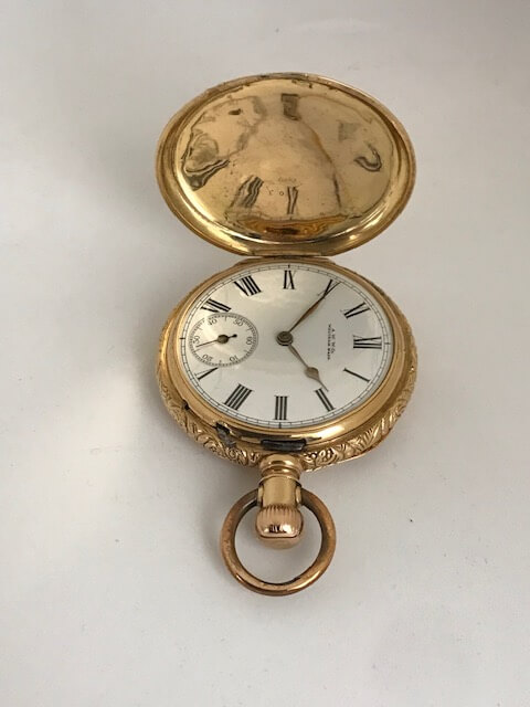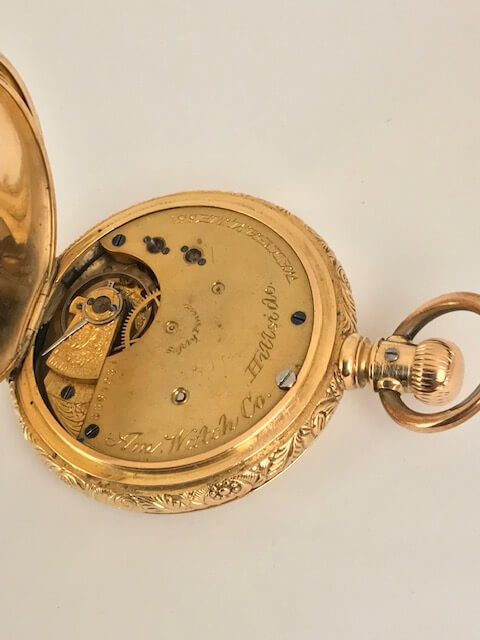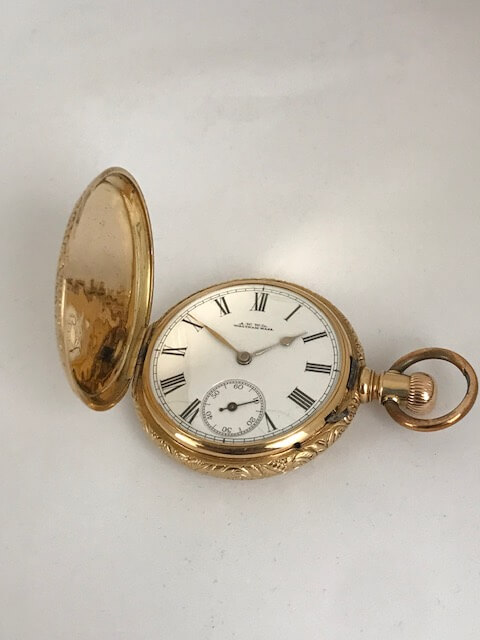 Antiek geelgouden Vestzakhorloge van het mooie degelijke merk: Aww&co "Waltham".