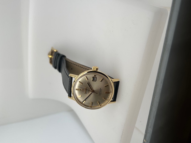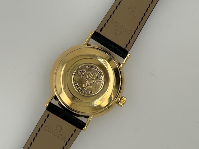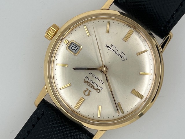Omega de Ville Seamaster van het huis Türler uit Zwitserland. Een speciale uitgave dus van een mooi heren polshorloge van 18 krt goud met een originele lederen band en gesp van Omega.