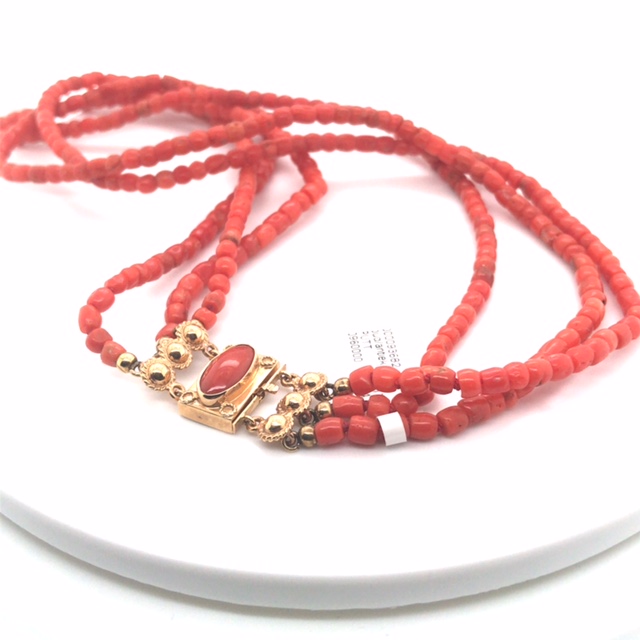 Occasion 5 rijig bloedkoraal collier met gouden slot