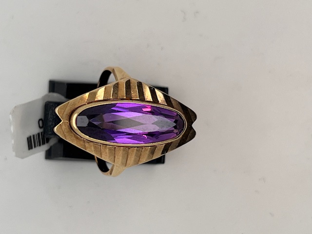 mooie klassieke dames ring met een Amethist. De schulprand is heel apart bewerkt, hetgeen je niet vaak ziet bij deze monturen.